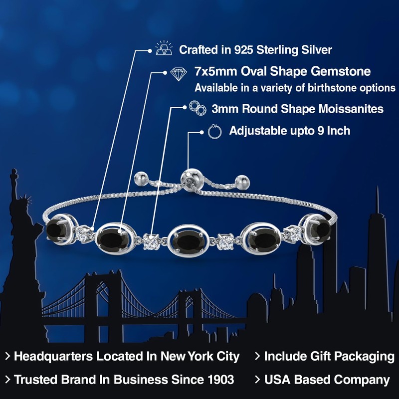 - Elegant and Versatile Design: This stunning bracelet features 3.60 Cttw of deep black onyx gemstones in classic 7X5MM oval cuts, set in polished 925 sterling silver. Its timeless design complements both casual and formal attire, making it a versatile addition to any jewelry collection.