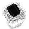 - Striking Black Onyx Gemstone: This ring showcases a bold and captivating 14X10MM emerald-cut black onyx gemstone with a substantial carat weight of 5.60 Cttw. The deep black color of the onyx adds a touch of drama and sophistication to the ring.
