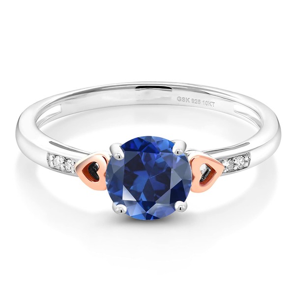 Gem Stone King 925 Silver and 10K Rose Gold Blue Created Sapphire and Diamond Women Engagement Ring (1.60 Ct Round, Available in size 5, 6, 7, 8, 9)
