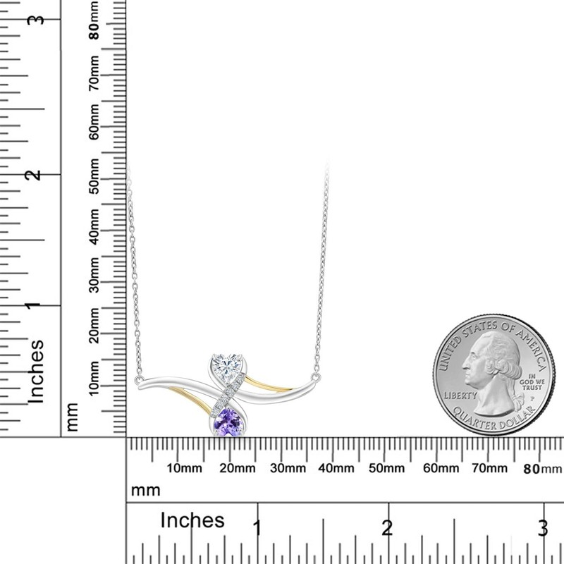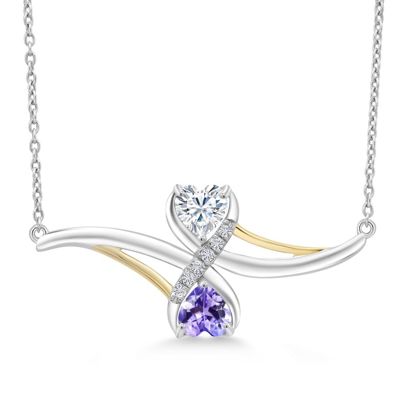 Gem Stone King 925 Silver and 10K Yellow Gold Pendant with Chain Necklace Set with Heart Shape Moissanite and Tanzanite (1.06 Cttw)