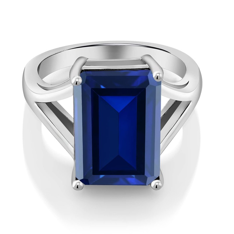 - Exquisite Customization: Make it uniquely yours with this personalized solitaire ring. The 14X10MM emerald-cut gemstone birthstone of your choice takes center stage, and you can further personalize it with your name or the name of a loved one beautifully engraved on the sterling silver band.