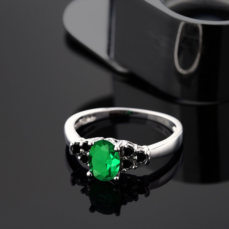 - Dazzling Gemstones: Adorned with a beautiful oval-cut green nano emerald measuring 6x4mm, complemented by sparkling black diamonds with a total carat weight of 0.60, this ring exudes elegance and sophistication, making it the perfect symbol of love and commitment.