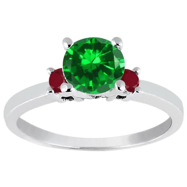 Gem Stone King 925 Sterling Silver Green Simulated Emerald and Red Ruby 3-Stone Engagement Ring For Women (1.24 Cttw, Round 6MM, Gemstone May Birthstone, Size 9)