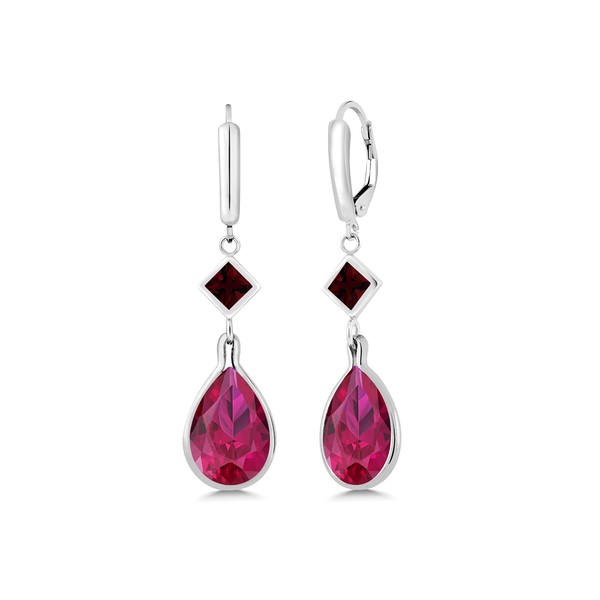 Gem Stone King 925 Sterling Silver Red Created Ruby and Red Garnet Earrings For Women (13.46 Cttw, Gemstone Birthstone, Pear Shape 14X10MM, Princess 5MM)