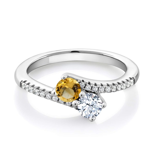 Gem Stone King 925 Sterling Silver Yellow Citrine Bypass Ring For Women (0.50 Cttw, Gemstone November Birthstone, Round 4MM, Available In Size 5, 6, 7, 8, 9)
