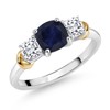 Gem Stone King - Anillo de compromiso de plata de ley 925 y oro amarillo de 10 quilates, zafiro azul y moissanita blanca, 3 piedras para mujer (1.94 quilates, corte cojín 6 mm y 4 mm, disponible en