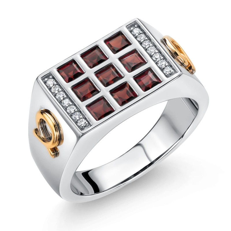 Gem Stone King Men's 10K Yellow Gold and 925 Sterling Silver Red Garnet and White Lab Grown Diamonds Ring (1.27 Cttw, Available In Sizes 9 to 13), Metal gemstone, Garnet and Lab Grown Diamond Garnet