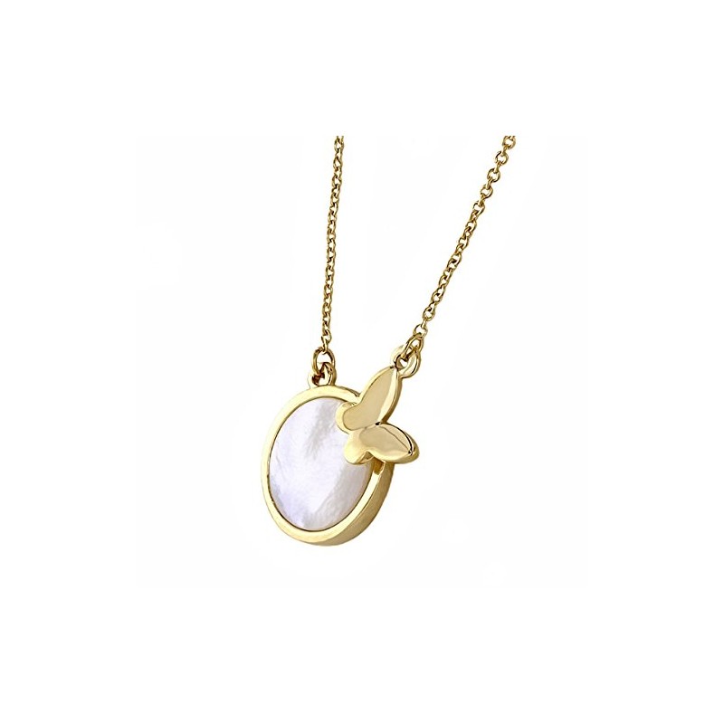 Gem Stone King White Pearl Butterfly Shape Gold Plated Brass Stud Earrings Pendant Set with 18 Inches Chain