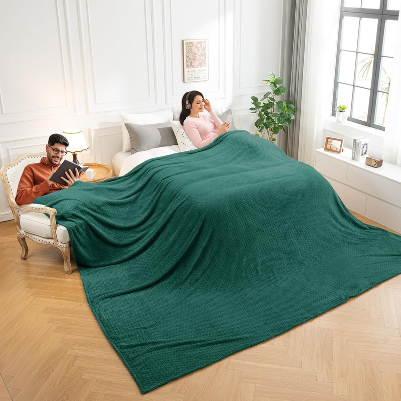 GEMBED Oversized King Throw Blanket 120"X120" - Fleece Lightweight Blanket, Luxury 3D Jacquard Decorative Giant Flannel Blanket, Ultra Soft Cozy Warm Blanket for Bed, Sofa Travel and Camping, Green