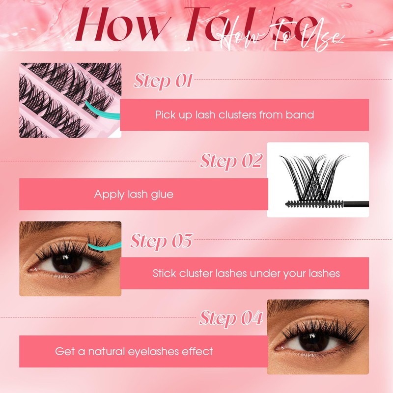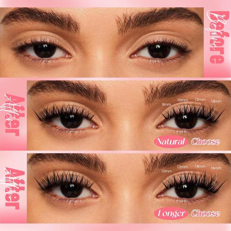 - 【DIY at Home】:You can apply cluster lashes at home by yourself and replace expensive and waste time beauty salon and get same perfect eyelash extensions look!