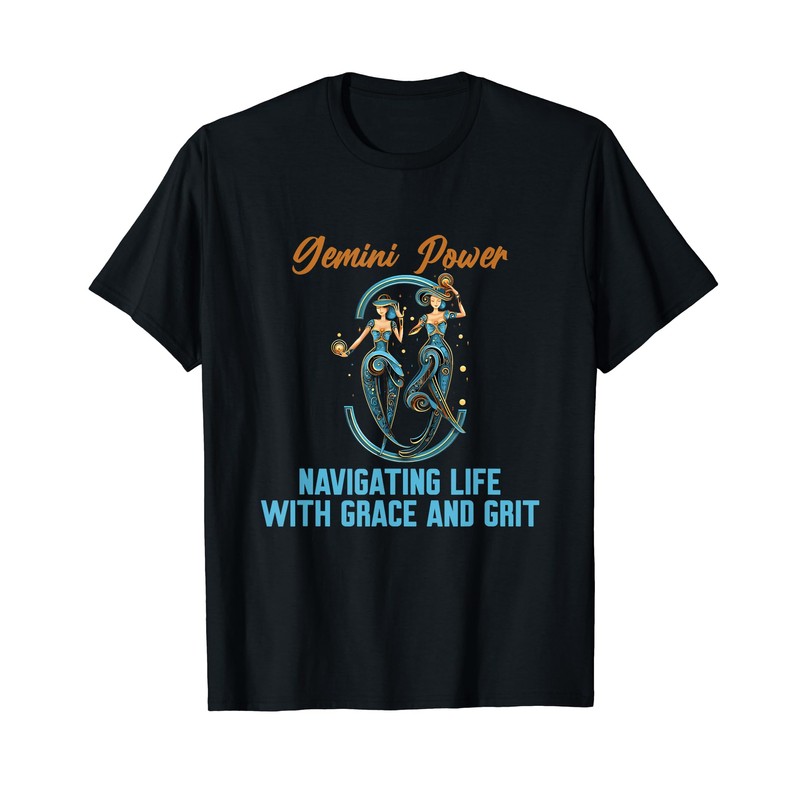 Gemini Power Navigating Life with Grace and Grit T-Shirt, black