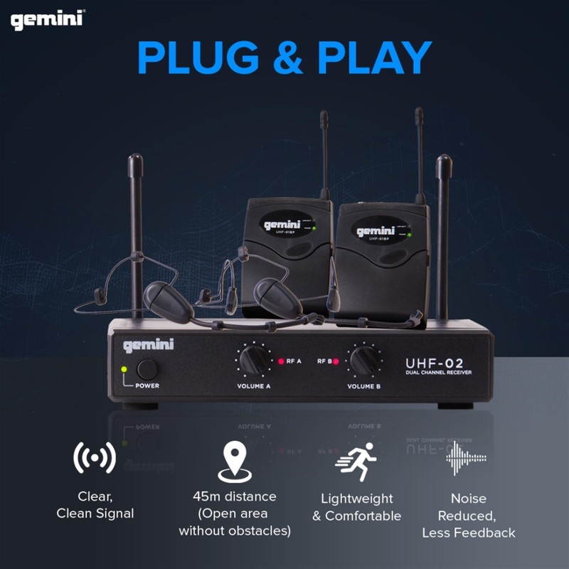 Gemini Sound UHF-02HL-S34 - Dual Channel UHF Wireless Headset & Lapel Mic System, Perfect for Fitness Instructors, Presenters, and Stage Performers