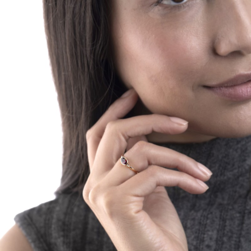 GEMISTRY East-West 14k Gold over Sterling Silver Garnet Gemstone Stackable Solitaire Bezel Ring