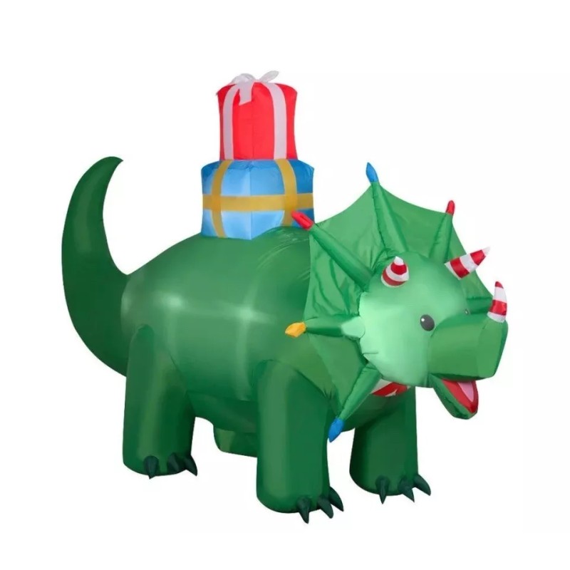 Delight guests and passersby with an Airblown® Inflatable Triceratops! This charming inflatable makes a delightful addition to your Christmas decorations. Setup is super simple. Just plug it in, stake it down and watch the magic unfold. Display this outdoor decoration as a standalone or combine it with other Airblown® Inflatables to create a custom scene. It's also perfect as an indoor Christmas decoration for parties,celebrations or that lovable little dinosaur lover thats eyes will be as big as saucers when they see this inflated. Includes everything needed for easy setup.