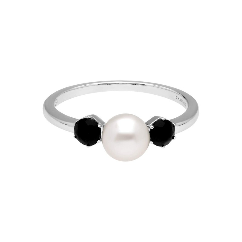 Gemondo USA Anillo de plata de ley con ónix negro y perla Metálico