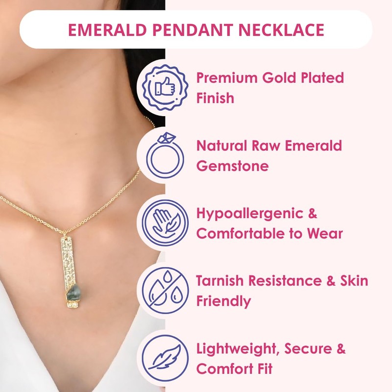- GENUINE RAW EMERALD GEMSTONE Features a 4–7 mm raw emerald — a symbol of renewal and heart-centered energy, prized for its rich natural green tone