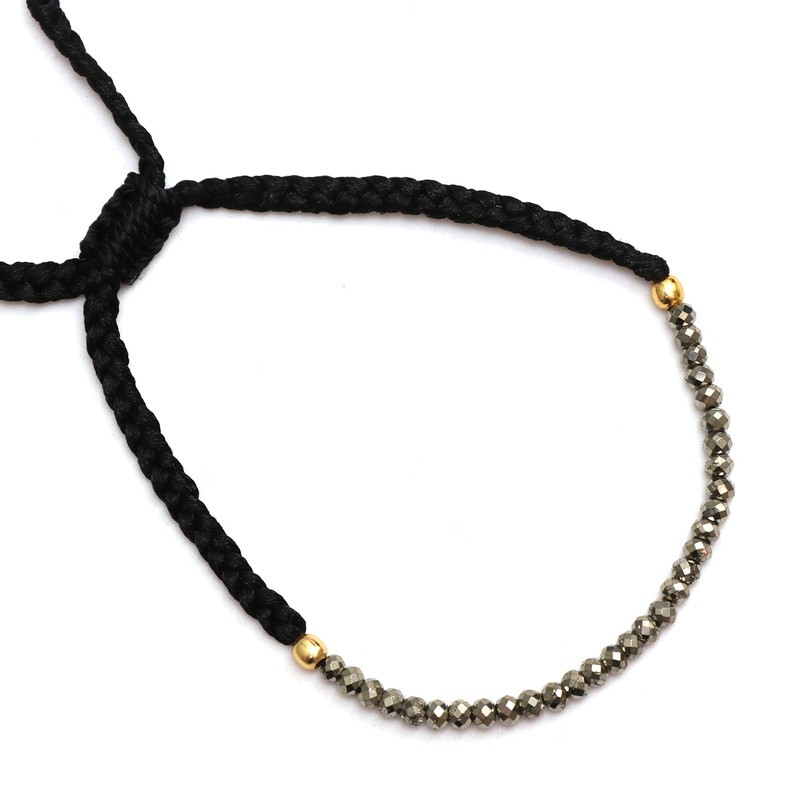- About product: This pyrite braided bracelet is made of thread and gemstone beads. This gorgeous bracelet is 8 inch. The design of bracelet ensures a comfortable fit for any wrist size, making it a versatile accessory for any wardrobe.