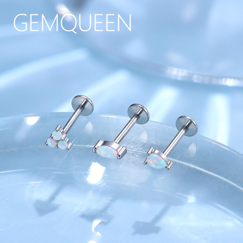 GEMQUEEN G23 Titanium Screw Back Opal Studs Earrings : Hypoallergenic 14K Gold Flated 18G Internally Threaded Nose Stud Conch Helix Cartilage Tragus Piercing Jewelry for Women Men Sensitive Ears