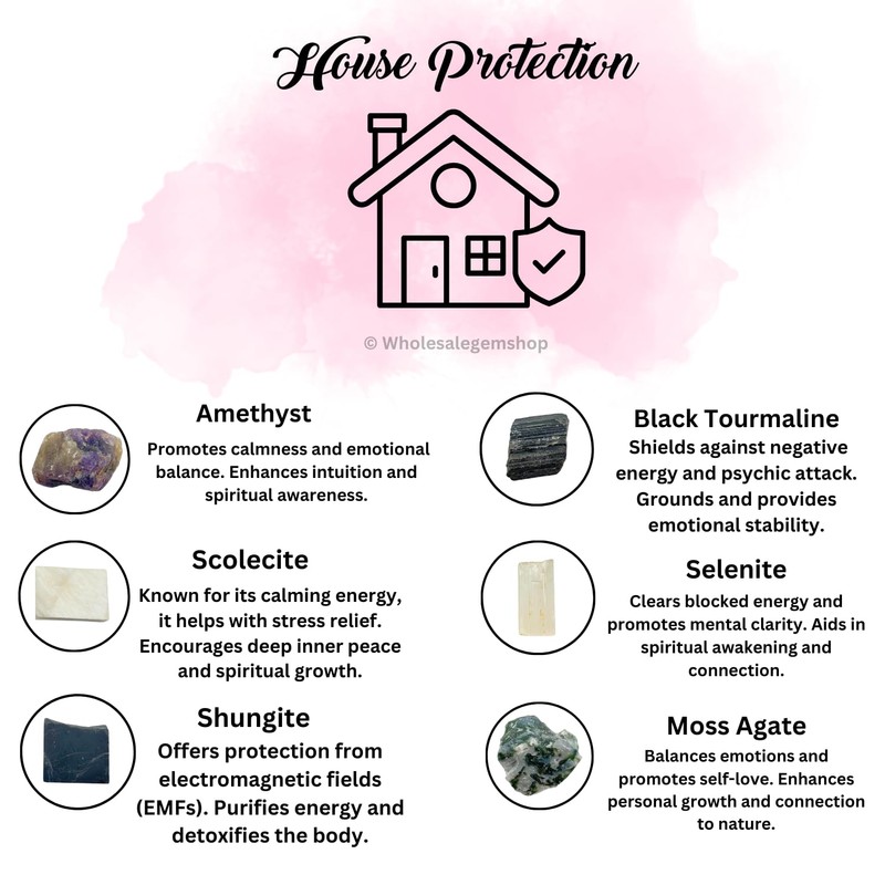 - The powerful house protection crystal gift set contains highest quality and ethically mined crystals and healing stones to provide touchstones of bringing serenity and harmonious while dispelling evil and negativity.