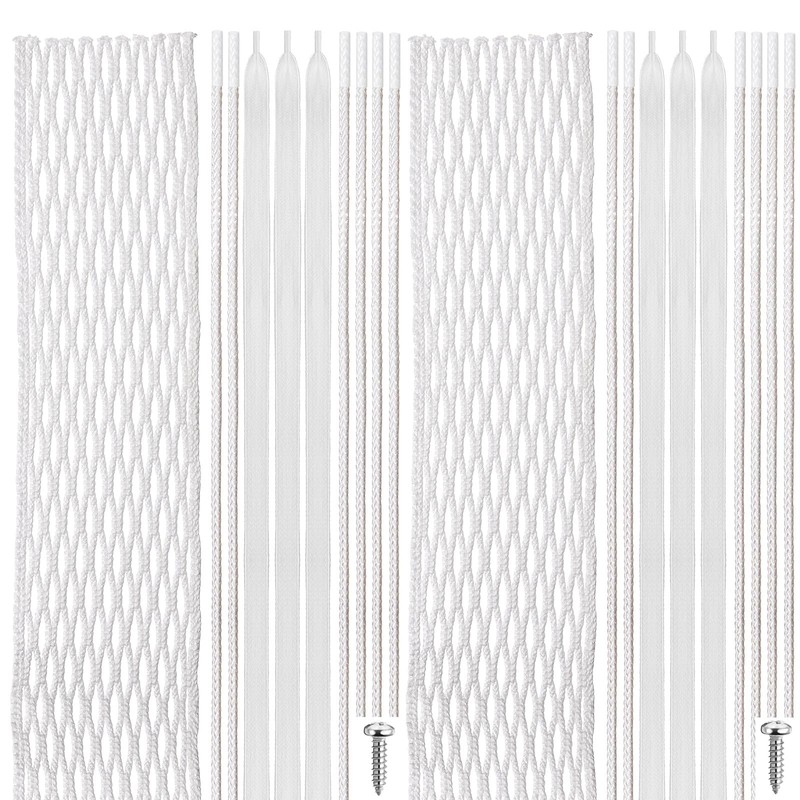 - Complete Lacrosse Stringing Kit: with our extensive combination package, you get most things you need for lacrosse stringing in one handy kit; It includes 2 pieces of lacrosse mesh, 6 lacrosse shooting laces, 4 lacrosse stick shooting strings, 10 pieces of lacrosse sidewall string, and 2 screws, ensuring you're totally equipped for many meshing or stringing demands and which is lightweight, hydrophobic and durable with nice quality
