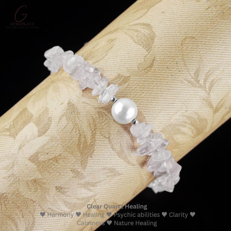 GEMSPLACE Clear Quartz Chips Bolo Bracelet, Chips Stones, Silver Plated, Chakra Healing Crystals Gemstone, April Birthstone, Adjustable Slider Bracelet Jewelry gift for women