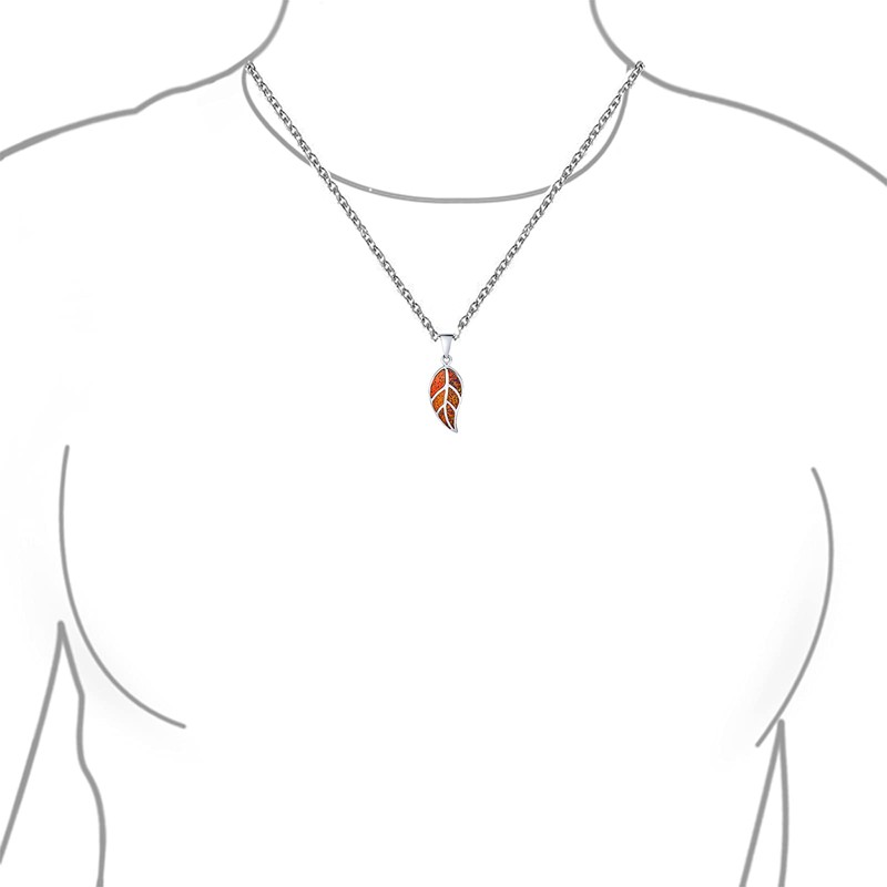 Gemstone Created Orange Brown Fire Opal Inlay Nature Leaf Pendant Necklace Western Jewelry for Women Teen .925 Sterling Silver October Birthstone
