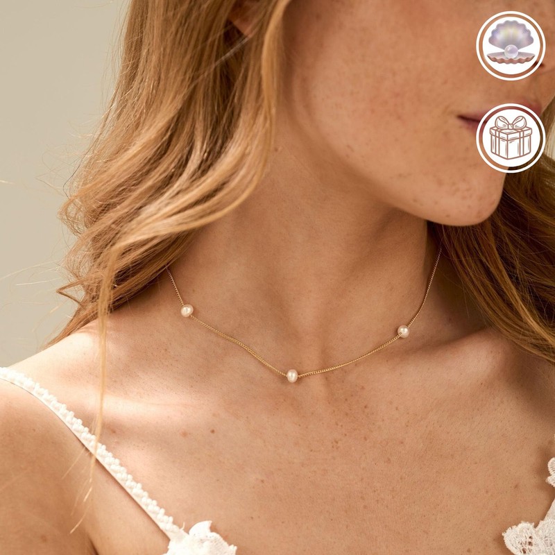Gemsun 14K Gold Genuine Freshwater Pearl Choker Necklace, Gold Pearl Necklace, Minimalist Necklace, Wedding Jewellery, Bridesmaid Gift