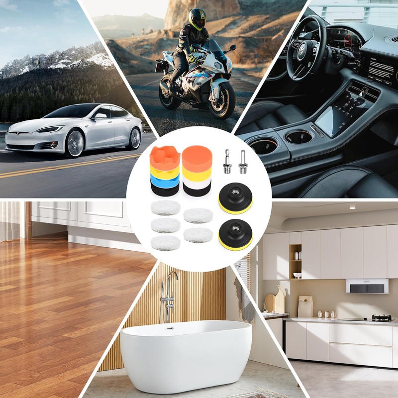 Gemtte 80 mm polishing sponges pads, 17 pieces polishing set, car polishing pad, polishing attachment, cordless screwdriver for polishing pad, drill polishing, grinding, waxing
