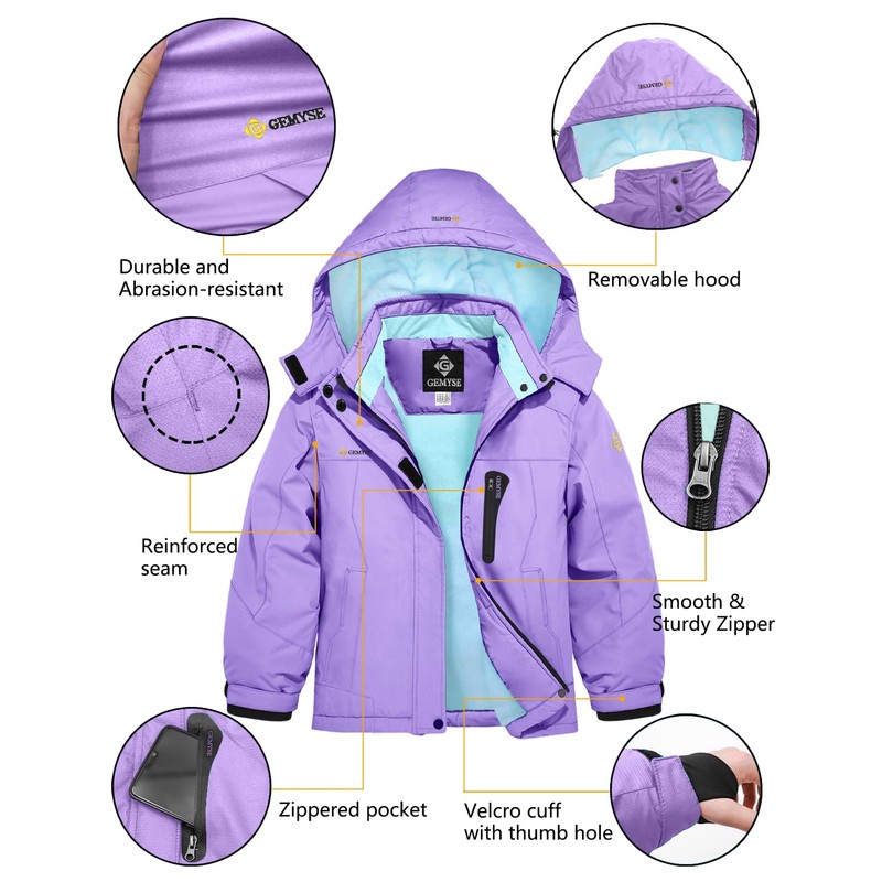- Warm & Durable Snow Jacket: The outer layer fabric is very durable & wear resistant, and the inner soft fleece lining is thick enough to keep kids warm and comfortable during the cold winter yet breathable and lightweight to wear. Also the stitching is reinforced,solid enough to wear for years.