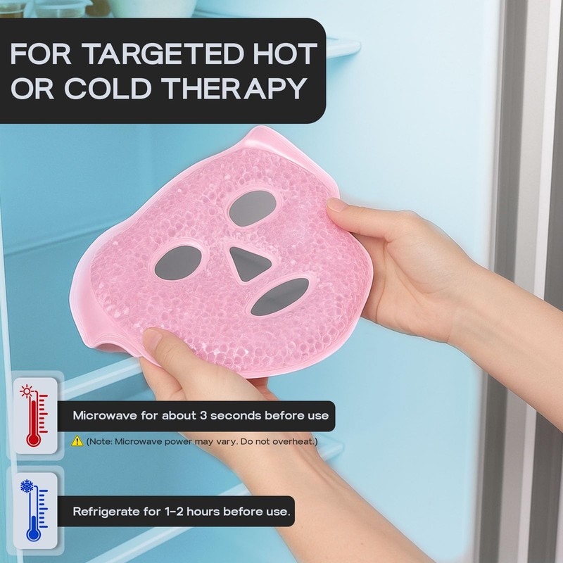 - Hot & Cold Application: For hot therapy, seal mask in a waterproof bag and steep in warm water for 10–15 minutes or microwave ~3 seconds; for cold, refrigerate ~3 hours—stays soft and contour-hugging.