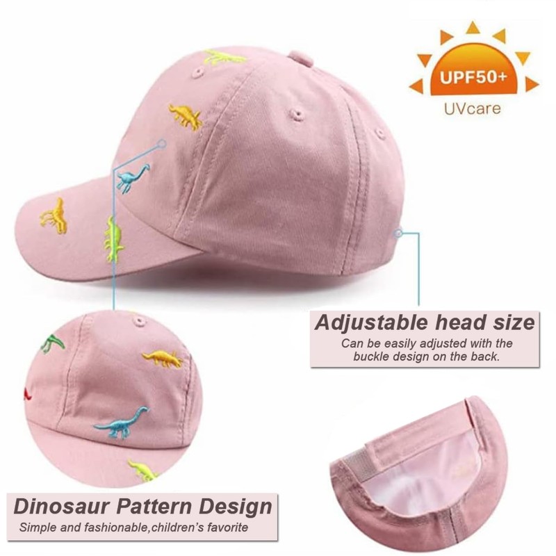 - Stylish Dinosaur Embroidery: It's really cute and delicate, the baseball cap is sewn with cute dinosaur pattern, which will make your little one look more lively and charming, and you will get a lot of compliments outdoors. Besides, this hat is available in 5 colours, so parents can choose different colours to fit your baby's different clothes. This is a must-have spring and summer accessory to make your baby super stylish!