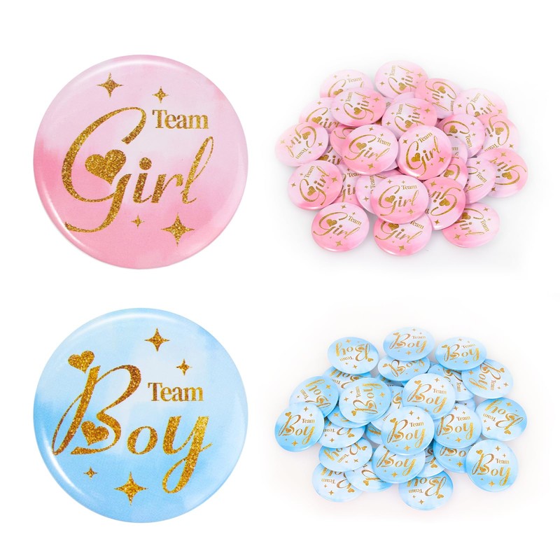 - 【Guess and Reveal 】Are you Team Boy or Team Girl? Grab a Gender Reveal Pin and guess away! Friends & family will love the chance to guess the gender of your baby. These Team boy Team girl Pins are a party favor to add more excitement to your Gender Reveal party, either as gender reveal decorations in your gender reveal games.