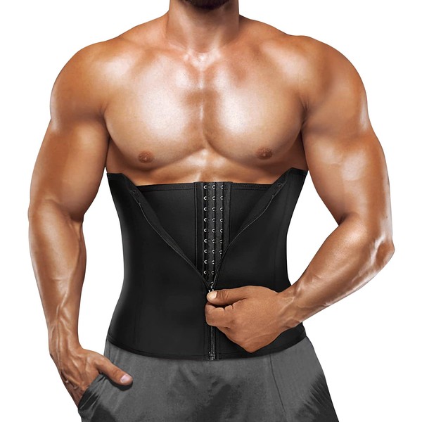 GENEMEN Mens Athletic Waist Cinching Belt Waist Shaping Belt with Buckle Zipper Style Sports Sana Belt (Black, L)