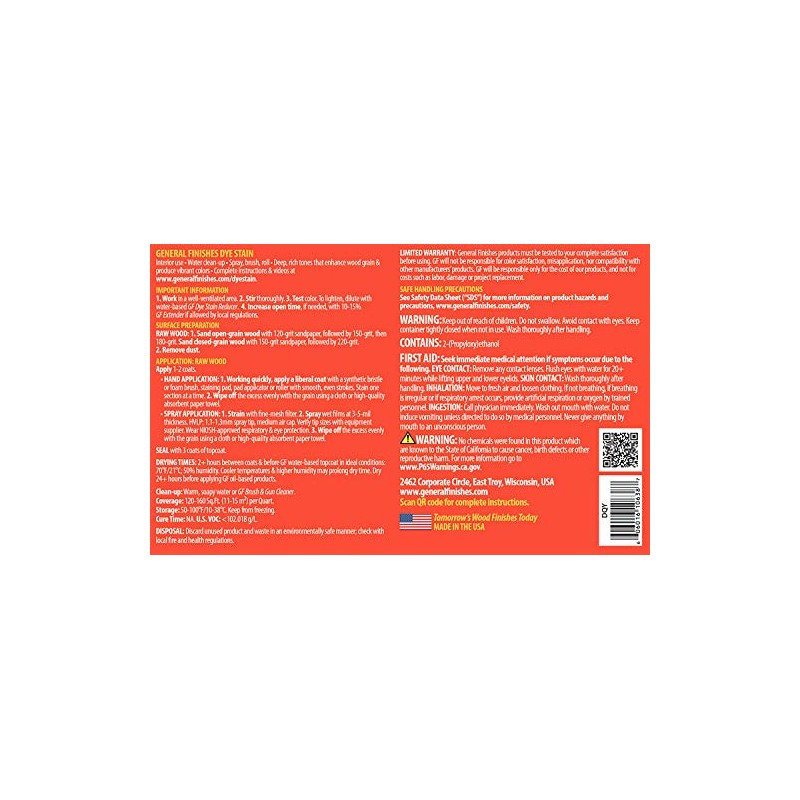 General Finishes Water Based Dye, 1 Quart, Yellow