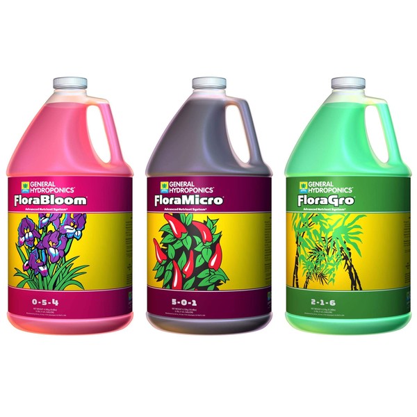 General Hydroponics Flora Grow, Bloom, Micro Combo Fertilizer set, 1 Gallon (Pack of 3)