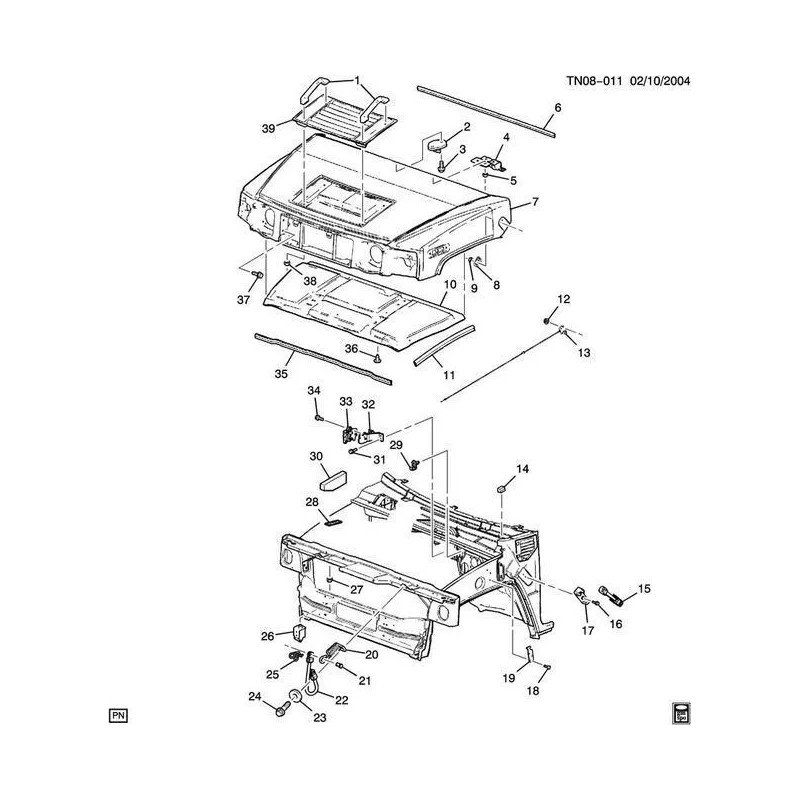 General Motors 2003-2009 Hummer H2 Hood Weatherstrip Rear Surround New OEM 15063465
