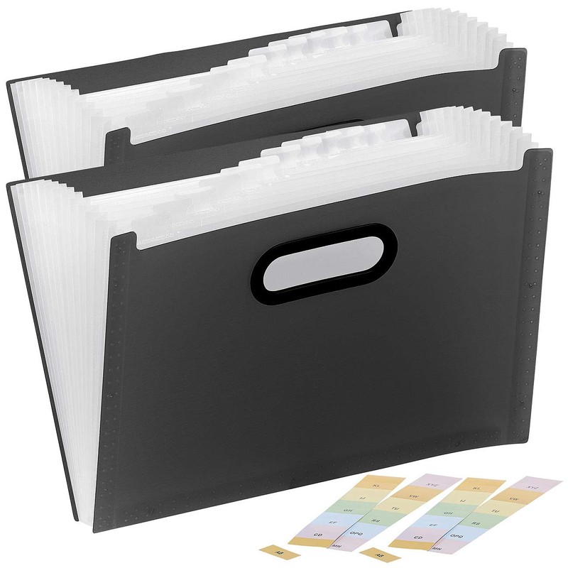 General Office Folders with Compartments: Set of 2 Plastic File Folders, 13 Compartments, Index & Carry Handle (Multi-Pocket Folder, Expanding Folder, Hanging Files)