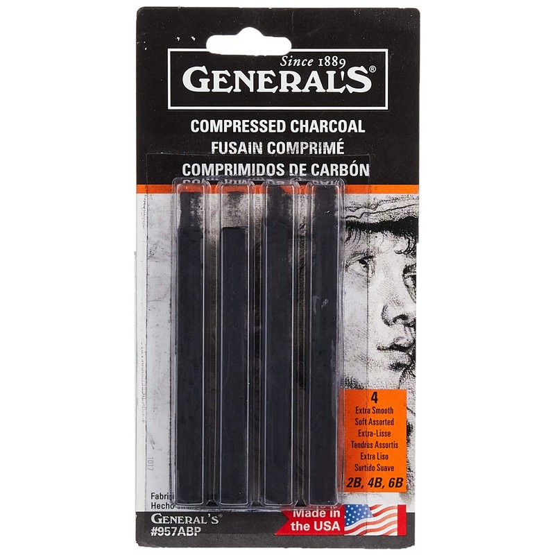 General Pencil 957ABP Compressed Charcoal Sticks 4/Pkg-Black - Soft Assorted