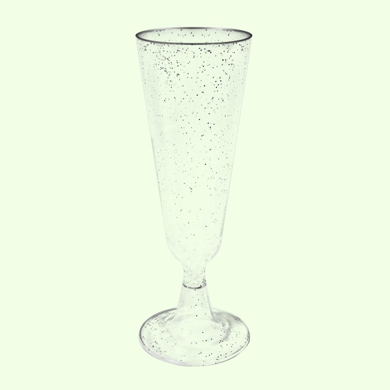 GENERALCARE Clear Plastic Champagne Flutes, 6 oz, 50 Pack, Disposable Shatterproof Party Glasses (Silver Glitter)