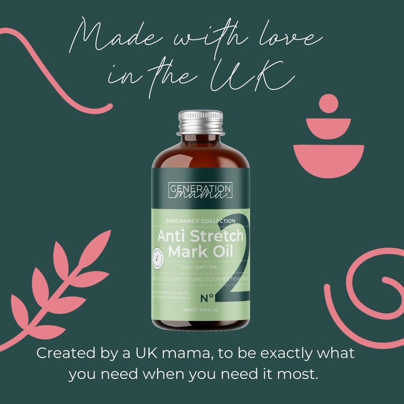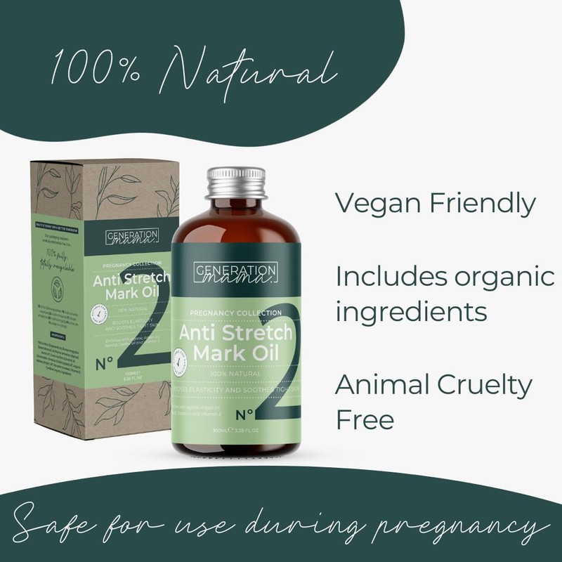 Generation Mama Anti Stretch Mark Oil 100ml - Ideal for Pregnancy - 100% Natural Vegan Body Oil, Prevents and Improves Appearance of Scars, Stretch Marks, Uneven Skin Tone and Dehydrated Skin
