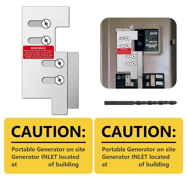 - Package Include:Generator interlock kit include: 1× Interlock Plate,1 × Drill Bit,4 sets of screws, 5 × Remind Label, 2 × Zip Ties, 1 × Installation instruction.