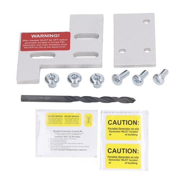 1、Safe Power Generation: This generator interlock kit avoids the inconvenience that can be caused by unexpected power outages. It is used to safely direct generator power to any circuit in your home. This really is a great way to safely connect your generator while ensuring you have access to all your household appliances. 2、Long Lasting Use: This generator interlock kit has a built in excellent chemical resistant and thick solid aluminium alloy interlock switch plate that is extremely durable for long lasting use. With a chamfered and oxidised finish, the generator interlock kit will maintain a stylish look and a smooth surface to protect the user's hands. 3、Easy Installation: This generator interloc kit is supplied with a 3/16 drill bit, made of sturdy steel, which fits easily through the circuit breaker panel. Easy to install, no additional control box or wiring required. 4、Compatible Model: This engine interlock kit is compatible with for General Electric GE 150 or 200 amp panels. 5、1 1/4 Spacing: 1 1/4inch between the main and generator circuit breakers for this generator interlock kit.