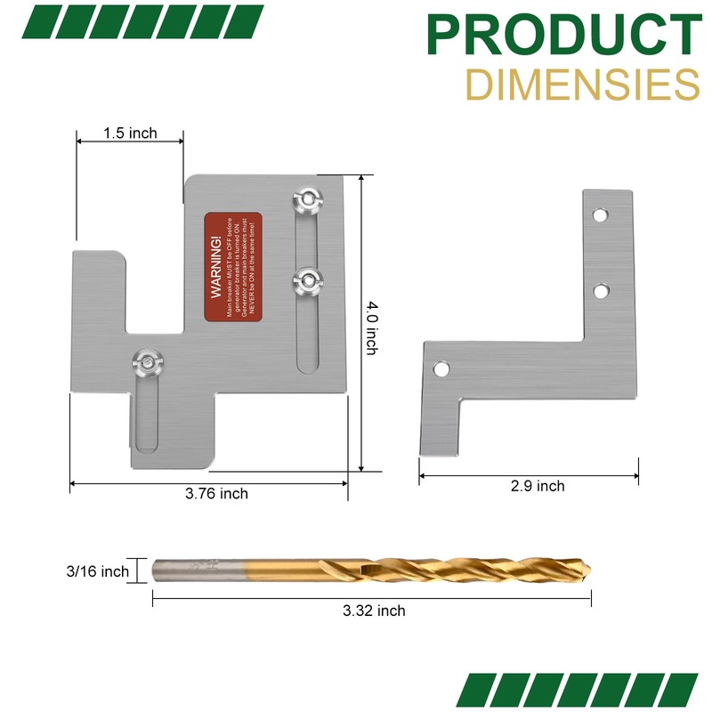 - 【Packing List】- Our engine interlocking kit contains interlocking plate x1, shoulder screws x3, hex nuts x3, generator startup program label x1, reminder label x5, generator circuit breaker retaining strap x2, 3/16'' drill bit x1, instruction manual x1