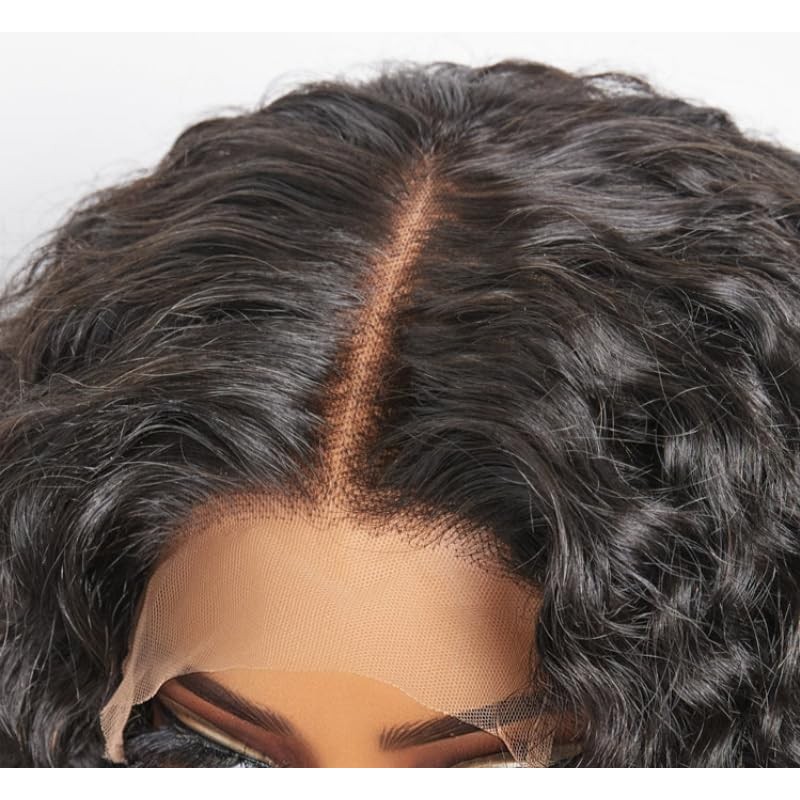 Generic 12 Inches 5x5 Glueless Lace Closure Bob Wig 100% Human Hair 150% Density Water Wave, Blsck