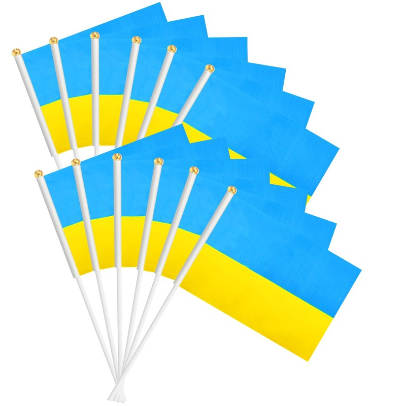 Generic 12 Pack Ukraine Hand Held Small Flags Mini Ukraine Flag National Country Flags with Round Top Stick, World Cup, Festival Events, Party Decorations, Supplies for Parades