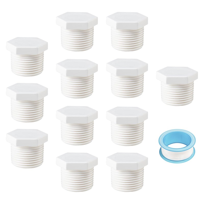 Features: 3/4 Inch Male Thread Plugs, hexagon head for easy installation and disassemble. High quality pvc material, strong and durable. Package Content: 12 x 3/4 Inch Male Thread Plugs 1 x Teflon tape Specification: Material: PVC Color: White Dimension: 33 x 28.5 x 25mm / 1.3" x 1.12" x 1"(L*W*H) Note: Color may be a little different due to monitor and light brightness from pictures. Thank you for your understands. Using manual measurements, there may be 1-2mm error, please understand. If there is any problem, please feel free to let us know, we will promise to refund or replace.