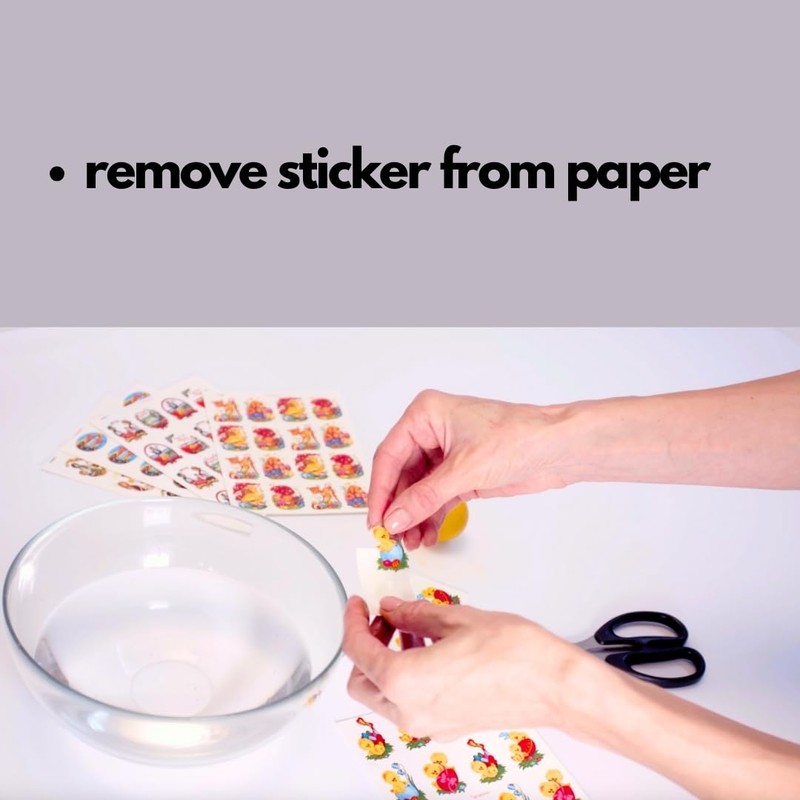 While you grasp lower edge of backing paper with other hand and pull downward leaving design free and in position.