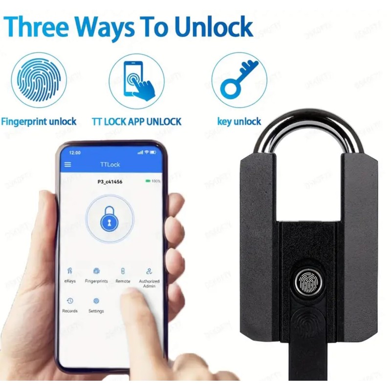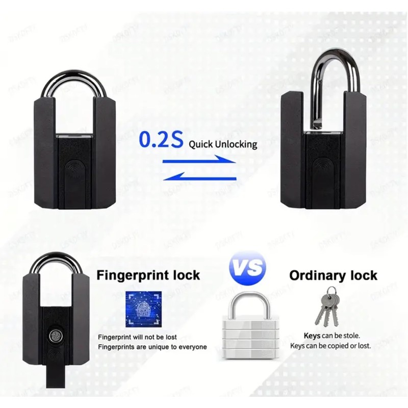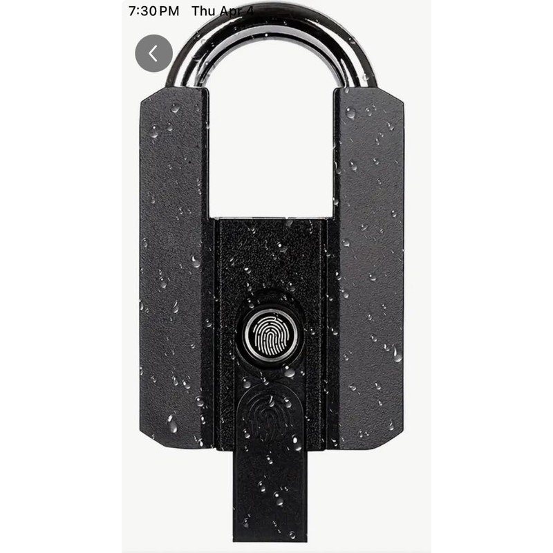 Generic 1pc Heavy Duty Fingerprint Padlock with APP, Waterproof Biometric Smart Lock with Key for Warehouse, Fence, Outdoor Gate Rechargeable Smart Padlock, Black/Silver