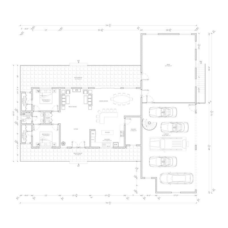 Generic 2-Bedroom Home Plans with 5-Car Garage, Workshop, Attic Room, and Basement - Building Plans for Homeowners, DIY Enthusiasts, Construction Professionals