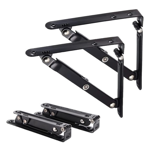 Generic 2 Pack Shelf Brackets 150mm Collapsible Wall Bracket Foldable Shelf Brackets 90 Degree Angle Folding Metal Shelf Brackets (6")